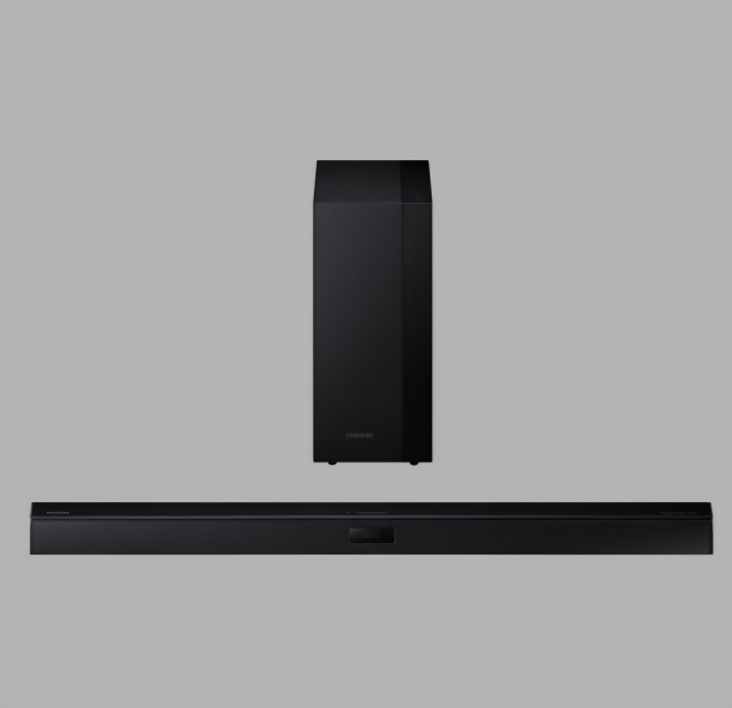 Mejora tu experiencia de entretenimiento en casa con la barra de sonido Samsung HW-H450. Diseñada para ofrecer un sonido potente y nítido, combina 290W de potencia con la comodidad de un subwoofer inalámbrico, eliminando el desorden de cables en tu salón.